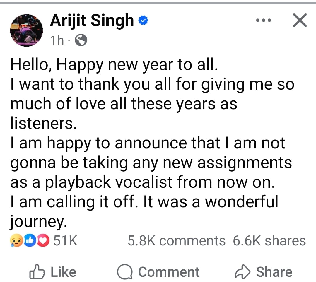 Read Moreबॉलीवुड को लगा बड़ा झटका: अरिजीत सिंह ने प्लेबैक सिंगिंग से लिया रिटायरमेंट