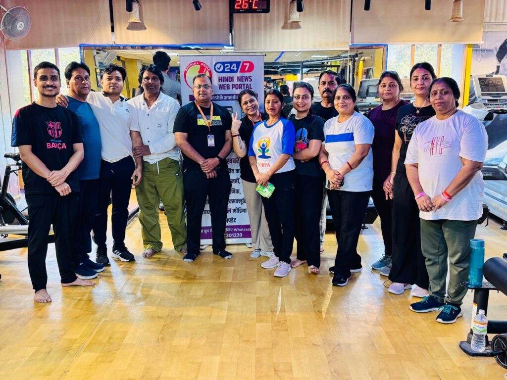 कार्यक्रम की शुरुआत सूर्य नमस्कार और ध्यान से हुई, जिसमें अंशिका मीडिया की एडिटर इन चीफ सलोनी तिवारी, नवदीप चतुर्वेदी और उनकी टीम सक्रिय रूप से शामिल रही। कार्यक्रम में H CUBE GYM के ओनर हेमंत पांडेय, योग प्रशिक्षिका शिमला देवी वर्मा सहित बड़ी संख्या में प्रतिभागियों ने हिस्सा लिया।