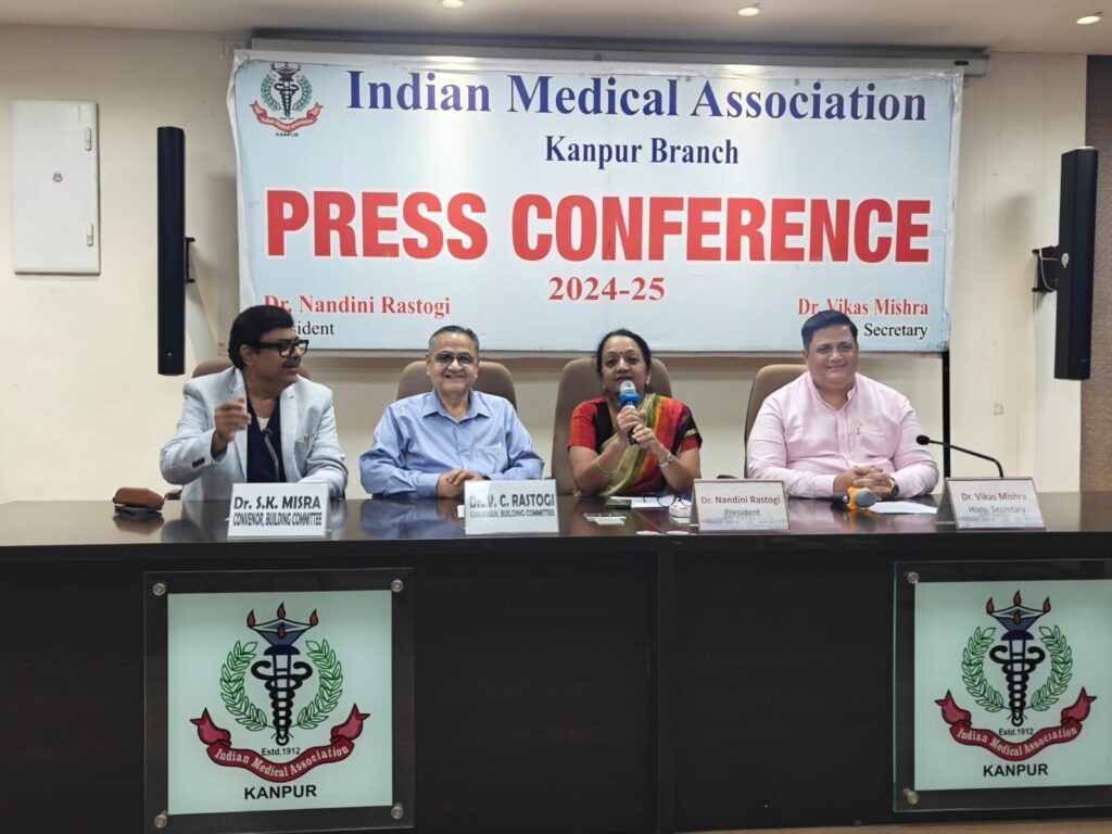 पत्रकार वार्ता में आईएमए कानपुर की अध्यक्ष डॉ. नंदिनी रस्तोगी, सचिव डॉ. विकास मिश्रा, बिल्डिंग कमेटी के चेयरमैन डॉ. वी. सी. रस्तोगी और कन्वेनर डॉ. एस. के. मिश्रा ने संयुक्त रूप से मीडिया को संबोधित किया।