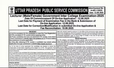 UPPSC ने इंटर कॉलेजों में 1,471 लेक्चरर पदों पर भर्ती निकाली, 12 सितंबर तक आवेदन करें