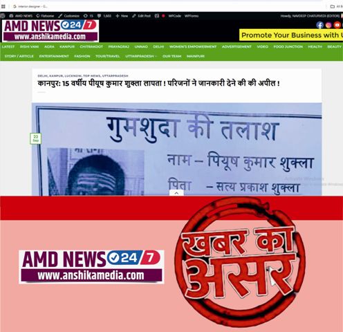 कानपुर के रहने वाले 15 वर्षीय पीयूष कुमार शुक्ला, जो बीते दिनों लापता हो गया था, अब सुरक्षित मिल गया है। परिजनों ने उसकी गुमशुदगी की जानकारी AMD न्यूज़ के व्हाट्सएप नंबर पर दी थी। जानकारी पीयूष के पारिवारिक भाई प्रियांशु शुक्ला (मोबाइल: 90266 66406) द्वारा साझा की गई थी।