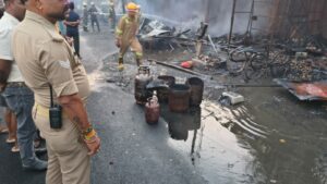 इस अग्निकांड में लगभग 20 अस्थायी दुकानें प्रभावित हुईं। आग के दौरान दुकानों में रखे करीब 5 एलपीजी सिलेंडर भी ब्लास्ट हो गए, जिससे मौके पर हड़कंप मच गया। हालांकि राहत की बात यह रही कि इस पूरी घटना में किसी प्रकार की जनहानि नहीं हुई।