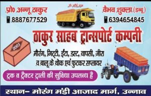 उन्नाव।मौरंग मंडी आज़ाद मार्ग, उन्नाव स्थित ठाकुर साहब ट्रांसपोर्ट कंपनी क्षेत्र में अपनी उत्कृष्ट सेवाओं [...]