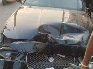 प्रयागराज में तेज रफ्तार जगुआर कार ने 8 लोगों को रौंदा, एक की मौत – दो बच्चे समेत 7 लोग घायल