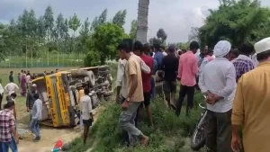 सीतापुर में स्कूली बस पलटी, बच्चे को बचाने में हुआ हादसा